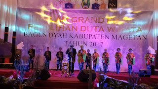 Grand Final duta wisata Bagus Dyah Kabupaten Magetan tahun 2017 digelar Dinas Pariwisata dan Kebudayaan ( Disparbud) Kabupaten Magetan di GOR Ki Mageti Magetan, Jumat (24/11) malam.